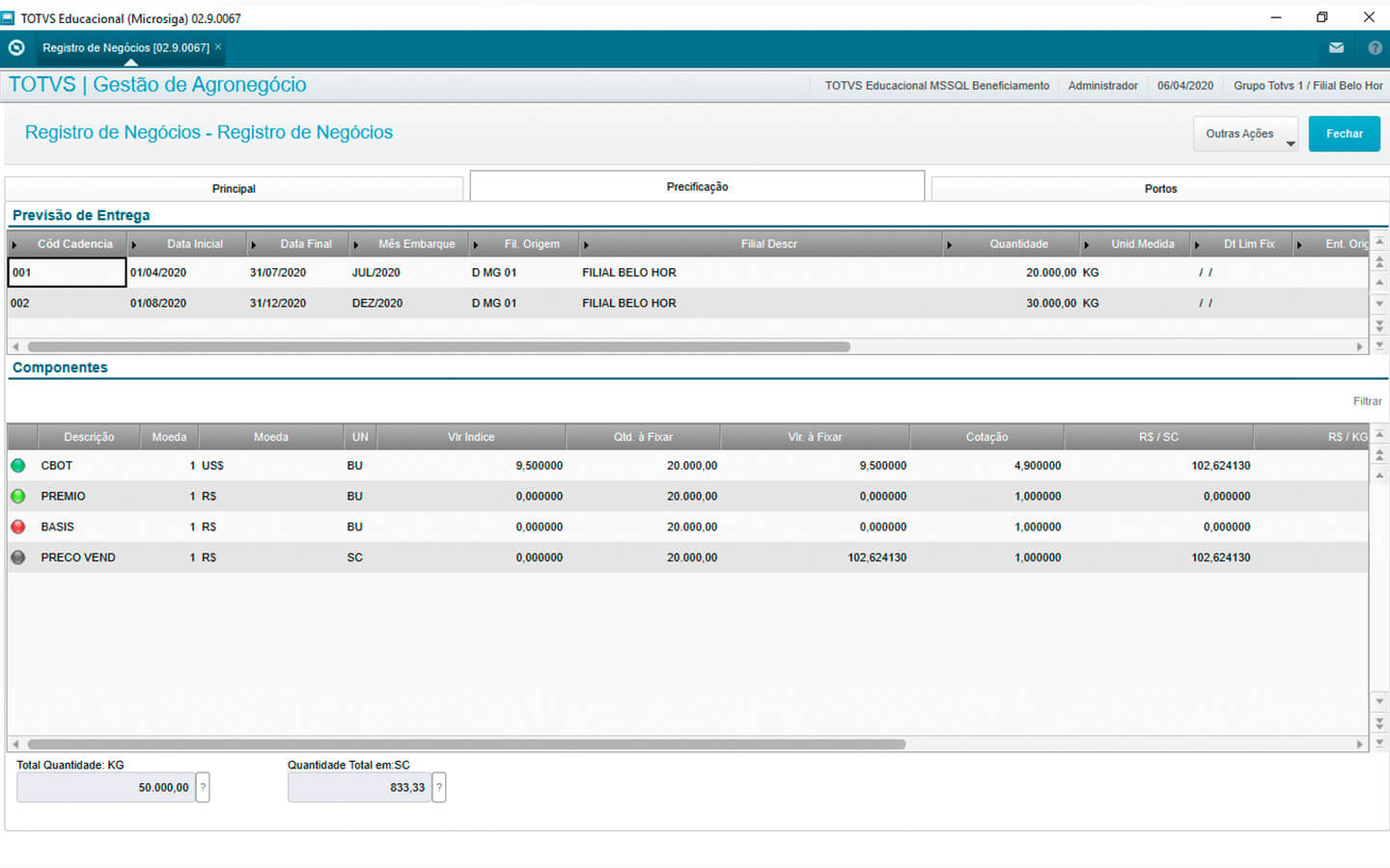 Faça a precificação das commodities com tabelas de preço fixadas ou a fixar, considerando variações como custos logísticos, variações cambiais e muito mais.