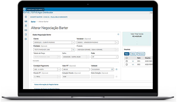 Gerencie todas as etapas das suas negociações de barter, desde o lançamento da campanha até a visita ao cliente para travar o preço da commodity e definir os insumos necessários para a safra.
