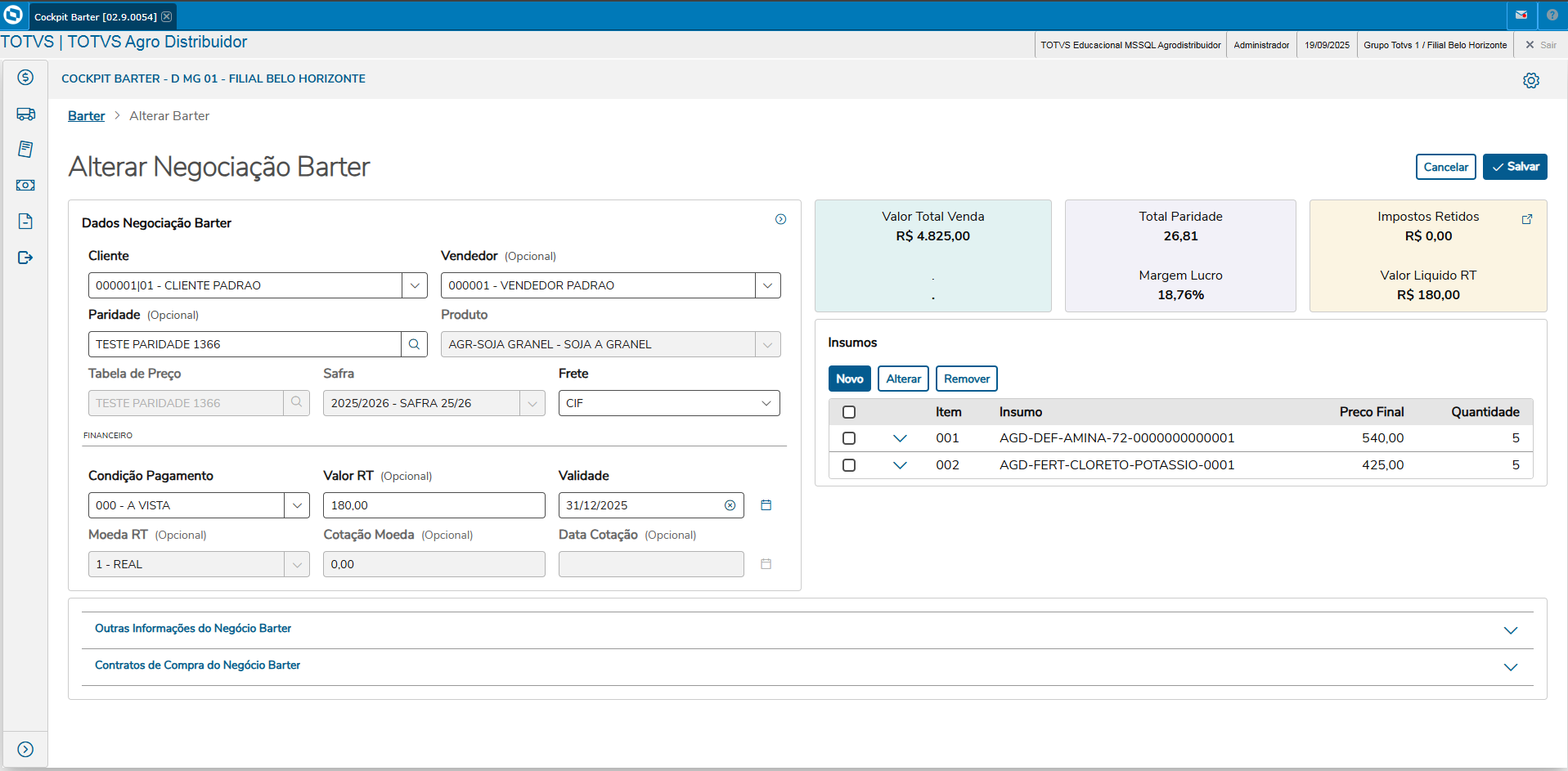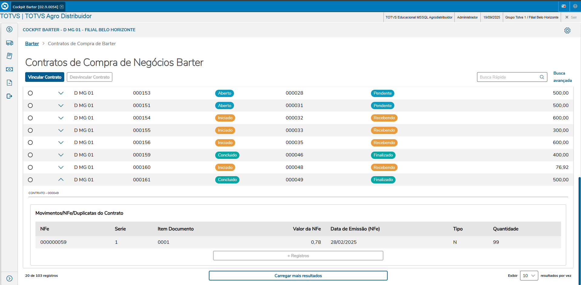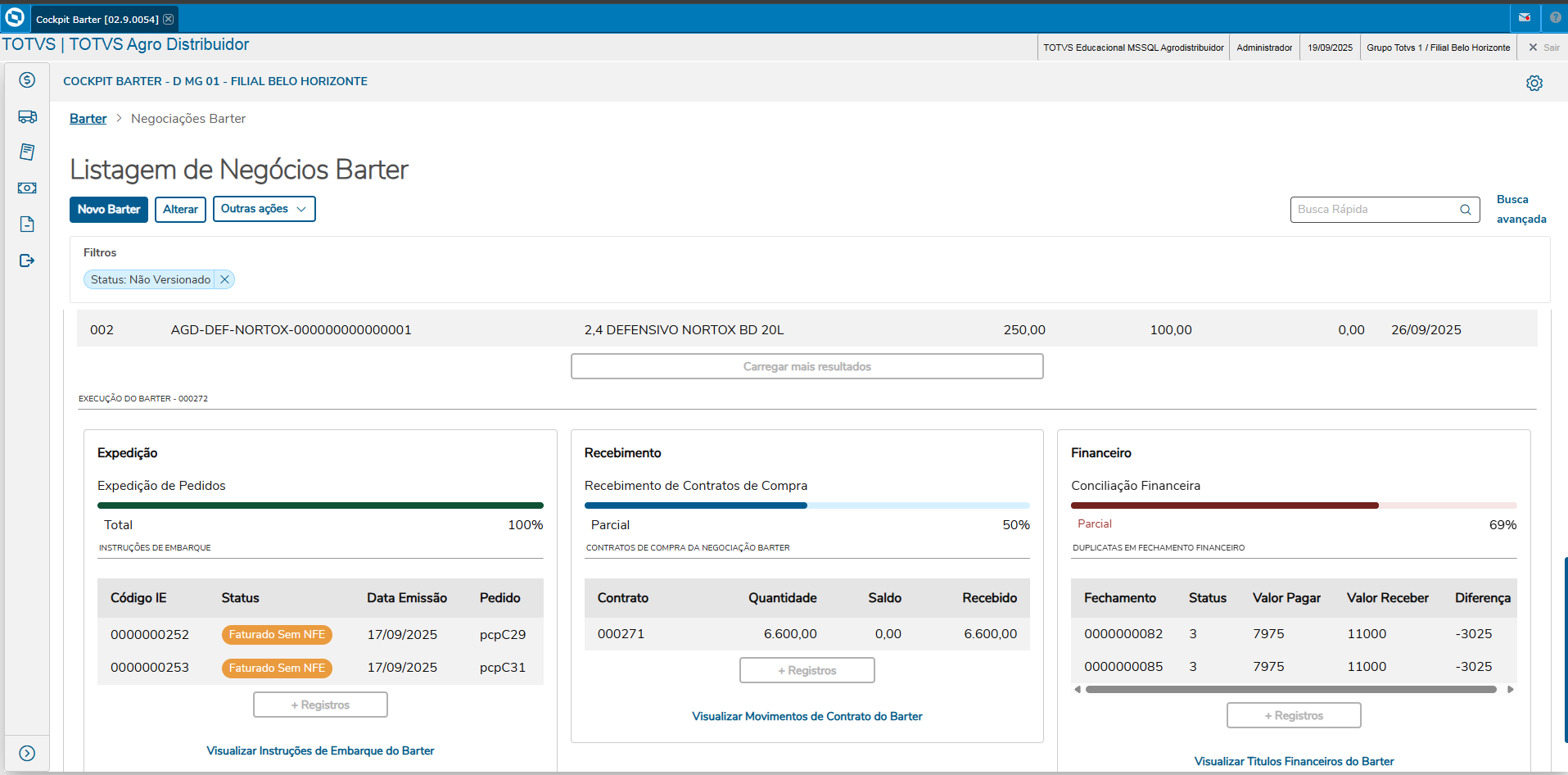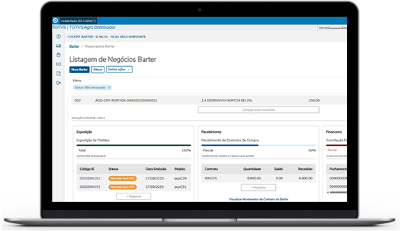 Acompanhe a execução dos contratos de barter e realiza o fechamento financeiro das operações para conciliar os documentos de saída e entrada.