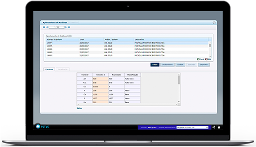 Registre análise de solo segura e completa, abastecendo o sistema com dados e resultados para que sejam geradas recomendações de melhorias.