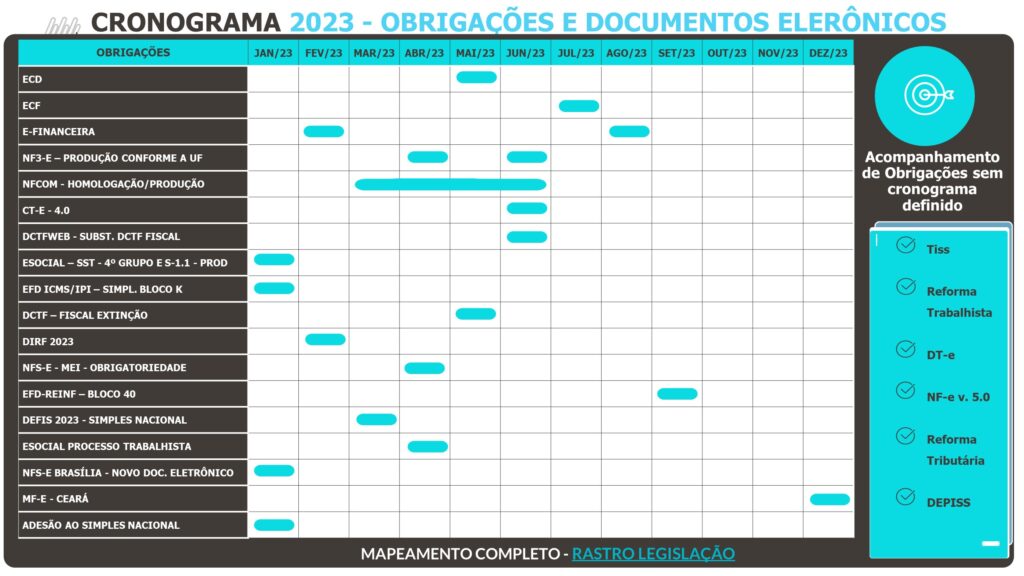 Pensando nisso, construímos um calendário de obrigações para o ano de 2023, pontuando as principais alterações e novidades a serem entregues para não perdermos nenhum detalhe.