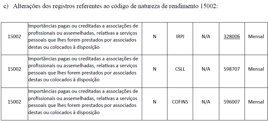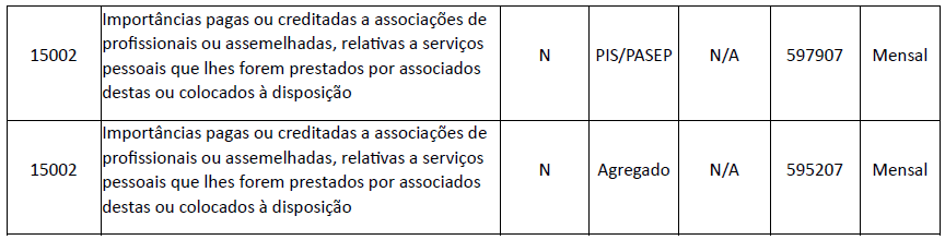 15002 – Importâncias pagas ou creditadas a associações de profissionais ou assemelhadas, relativas a serviços pessoais que lhes forem prestados por associados destas ou colocados à disposição”.