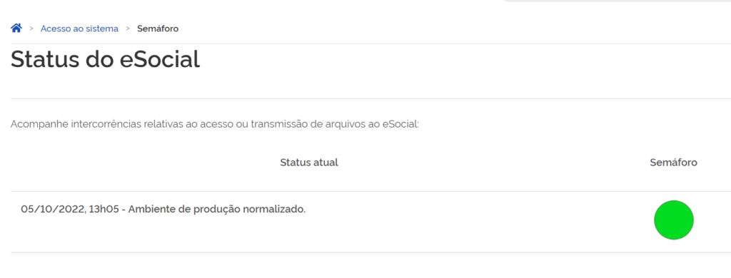 Com isso, o portal do eSocial realizou a atualização do Semáforo para o Status de Vermelho.