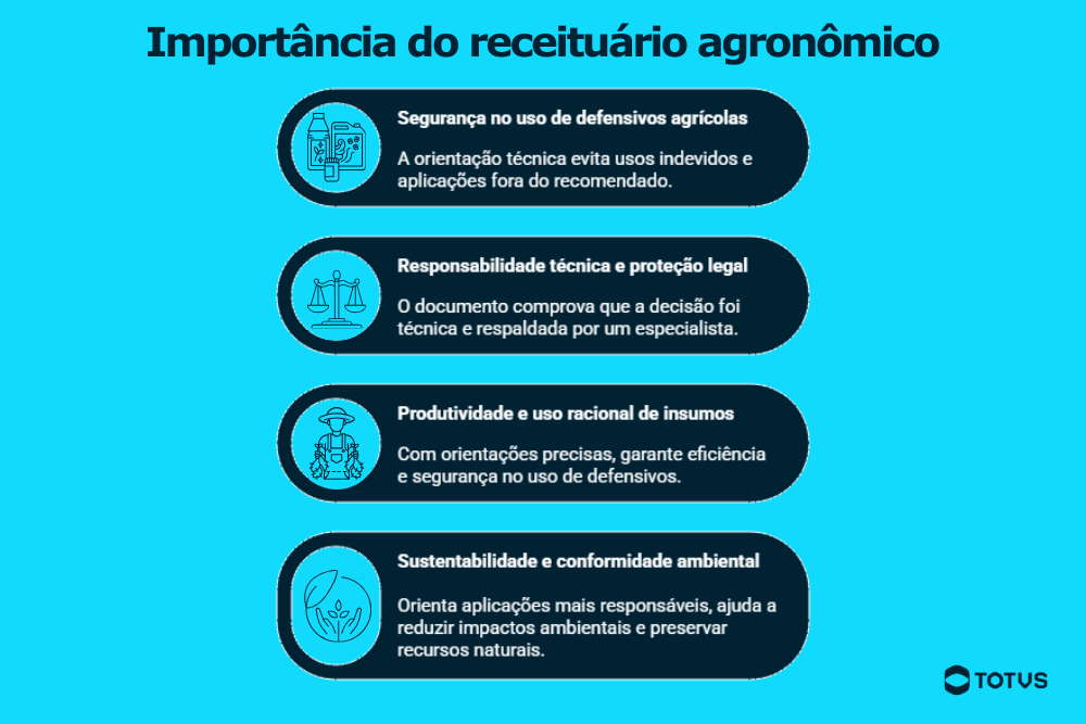 Ao emitir o receituário, o profissional assume responsabilidade técnica sobre a recomendação, o que traz segurança jurídica tanto para ele quanto para o produtor.