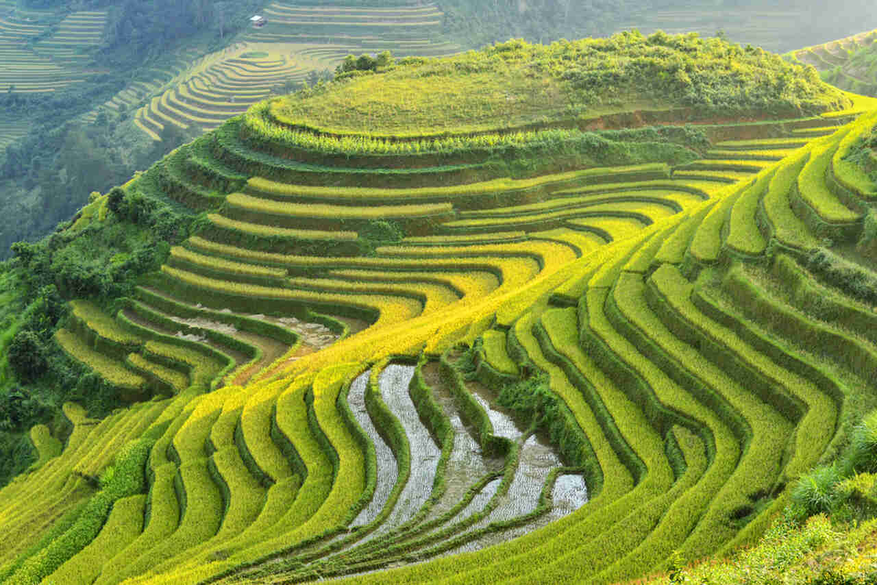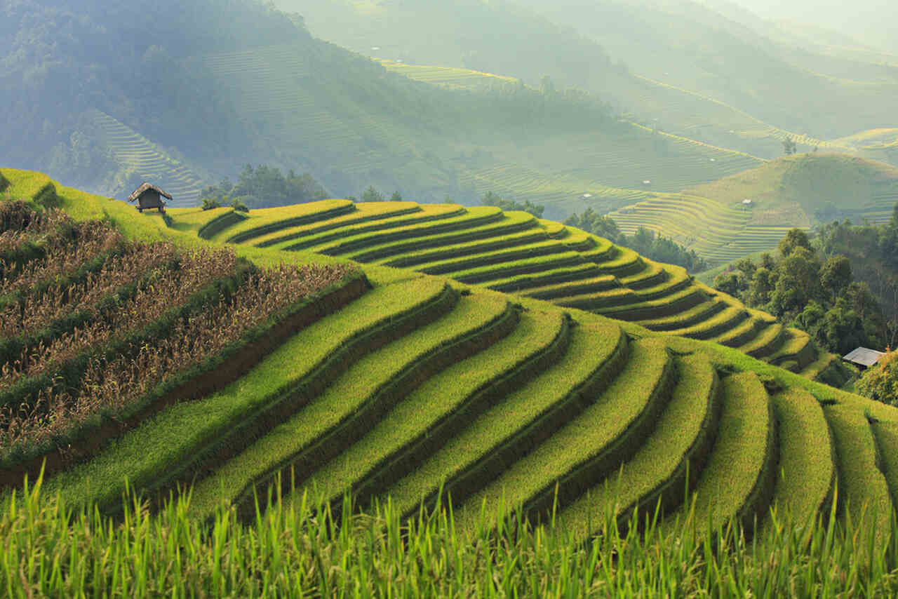 O terraceamento agrícola é uma técnica aplicada especialmente em terrenos montanhosos para aumentar a área de produção e prevenir a erosão do solo causada pela água.