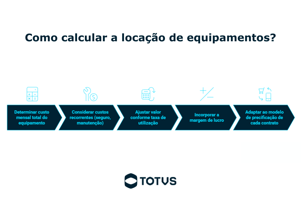 Para calcular o valor do serviço de aluguel, essa companhia pode utilizar uma fórmula básica como base para descobrir o custo mensal do equipamento: