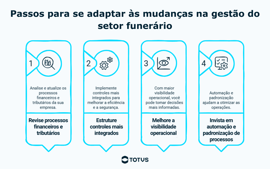Quando avaliamos as mudanças na gestão do setor funerário, isso representa uma necessidade de fortalecer processos internos, garantindo que todas as operações estejam corretamente registradas e documentadas.