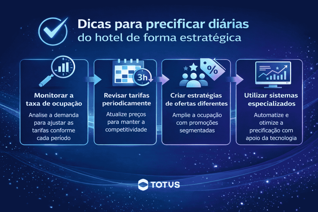O TOTVS Hotelaria Otimizador de Receita é uma ferramenta essencial para a gestão eficiente das diárias de hotel.