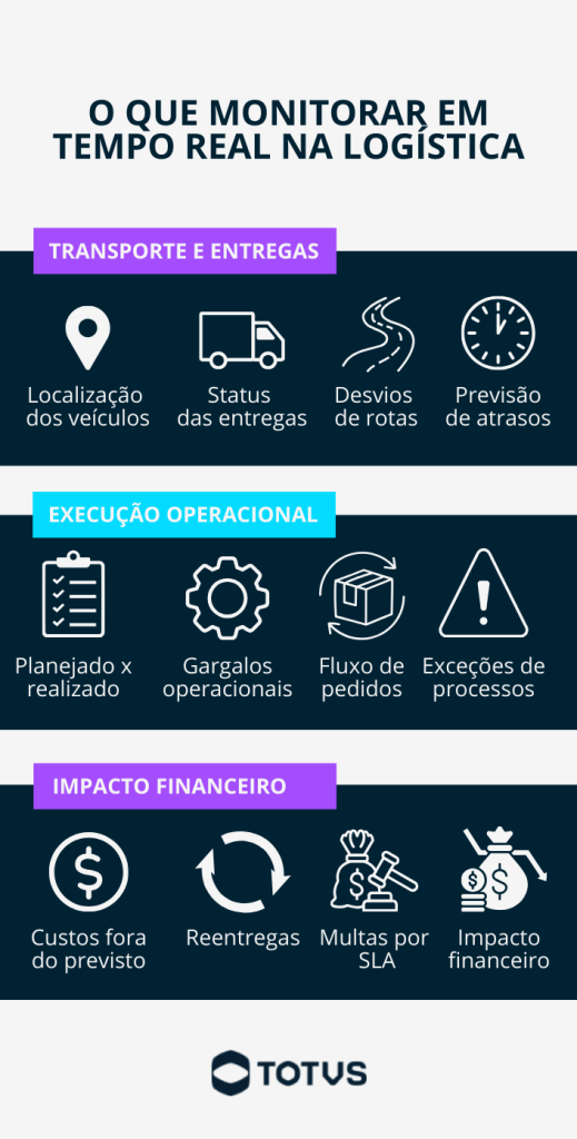 Quais informações precisam ser monitoradas em tempo real na logística?