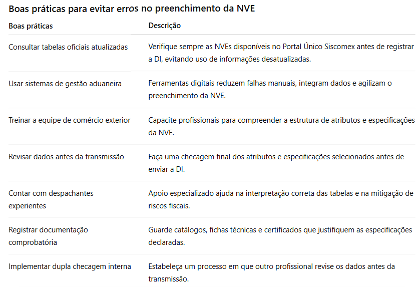Como a NVE tem impacto direto na valoração aduaneira e na qualidade das estatísticas de comércio exterior, qualquer inconsistência pode gerar consequências sérias para a empresa.