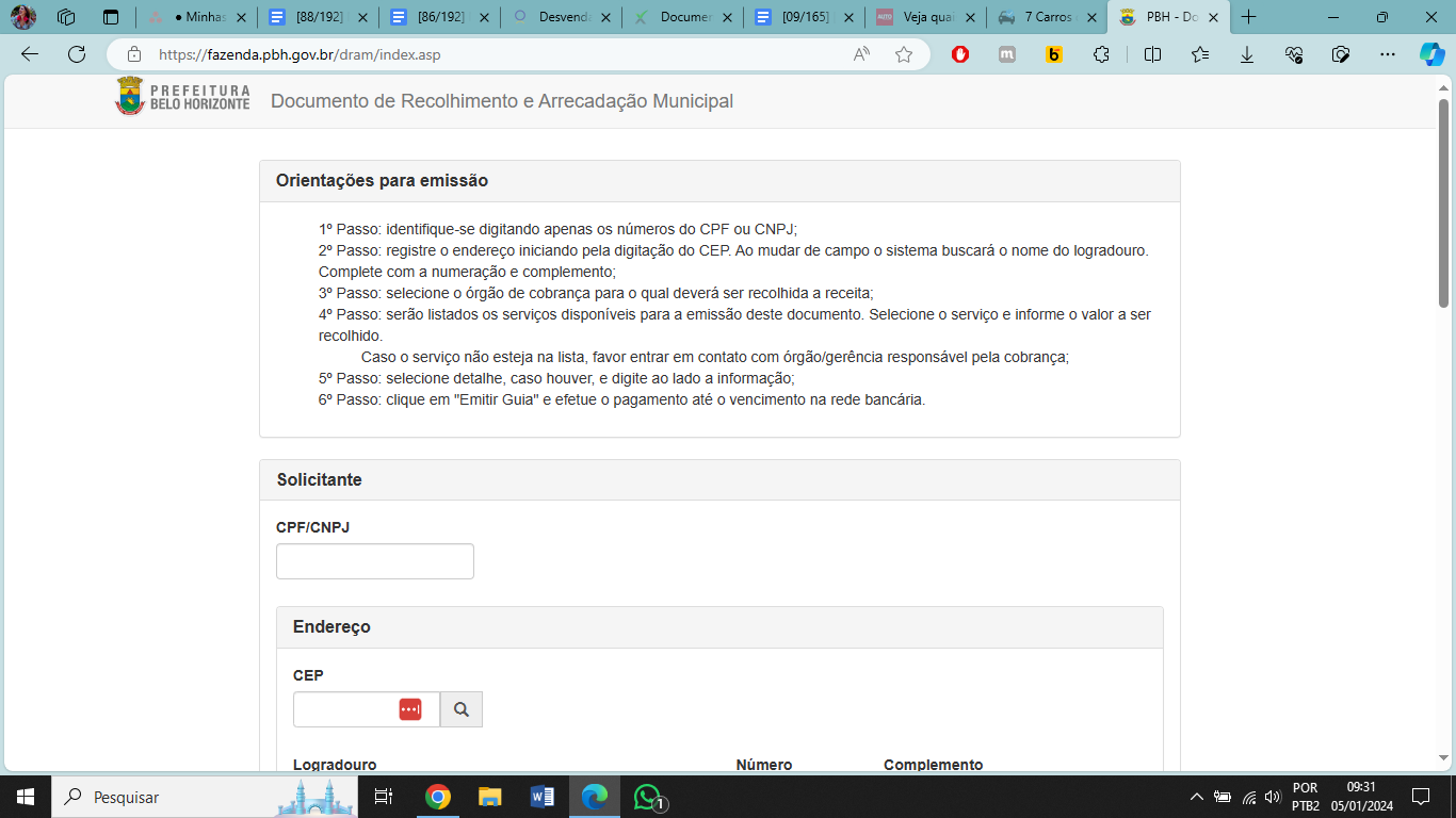 A seguir, colocamos uma imagem que ilustra o passo a passo do Documento de Recolhimento e Arrecadação Municipal de Belo Horizonte.