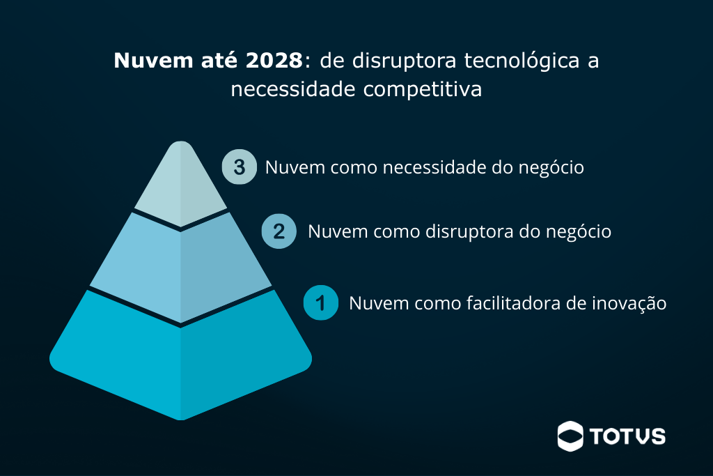 A consultoria afirma que, até 2028, a nuvem deixará de ser uma tecnologia disruptiva para se tornar uma necessidade competitiva.