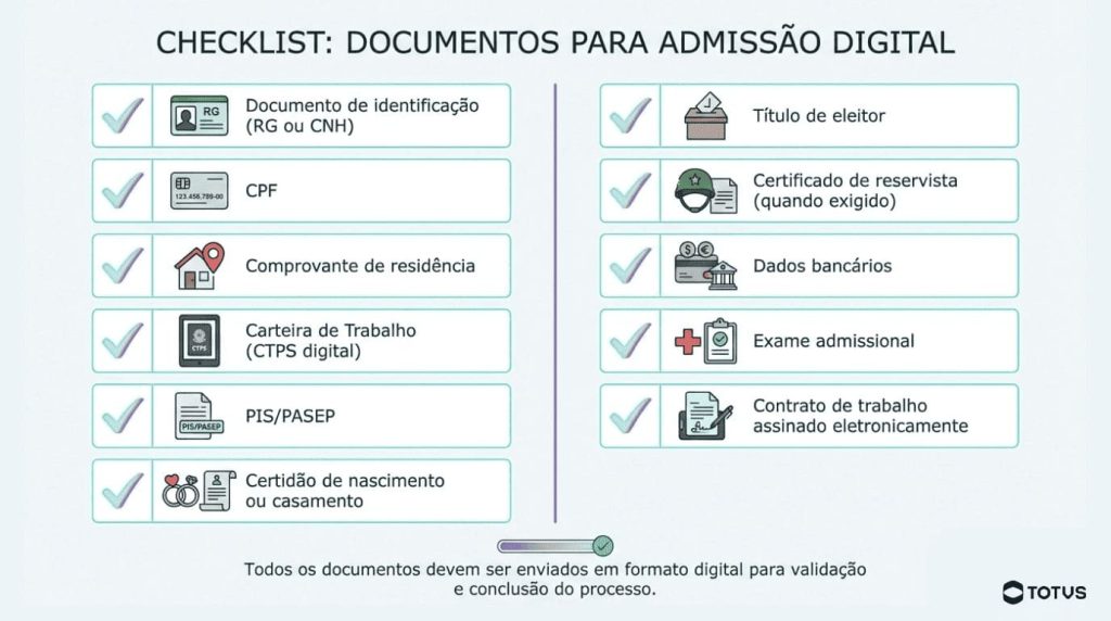 Desse modo, basta digitalizar os documentos — como sua identidade, certidão de nascimento, carteira de trabalho, entre outros — e enviar para a empresa.
