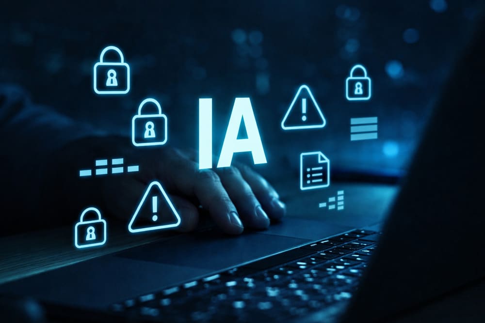 Entre os principais riscos estão vazamento de dados sensíveis, uso sem governança adequada, falsos positivos e falsos negativos, ampliação da superfície de ataque e exploração maliciosa da própria IA por cibercriminosos.