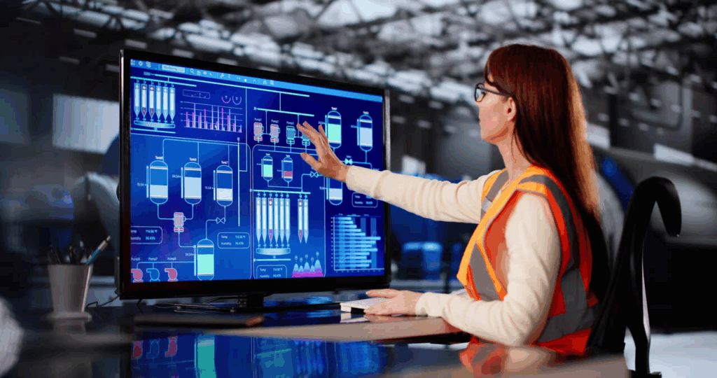 A IA ajuda a reduzir riscos em ambientes industriais ao prever falhas em máquinas, monitorar variáveis em tempo real e apoiar treinamentos em ambientes virtuais. Isso significa operações mais seguras tanto para os colaboradores quanto para a integridade dos equipamentos.