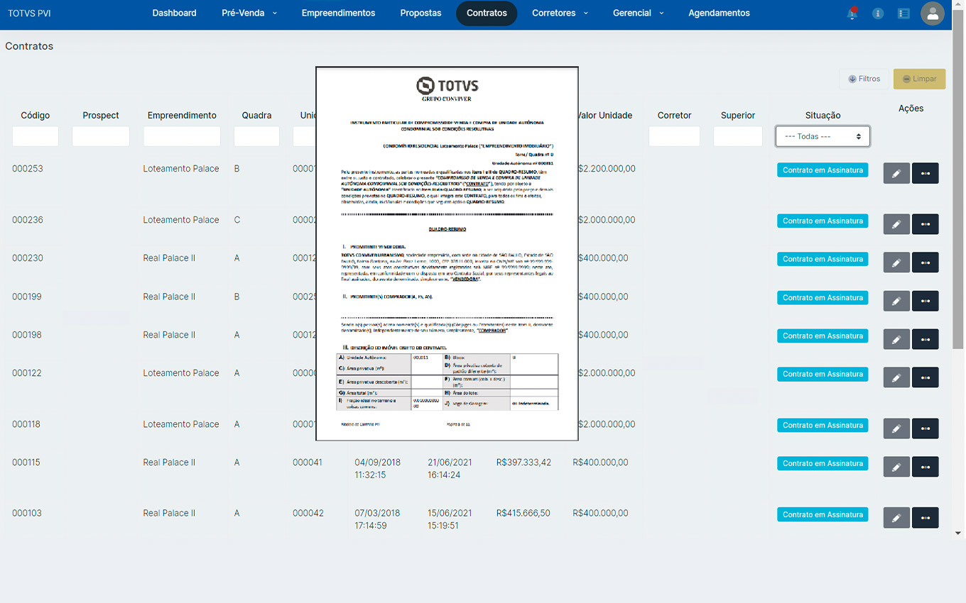 Com ele, os seus corretores têm acesso a todas as informações dos imóveis disponíveis para venda na carteira da sua empresa. O sistema também possui integração nativa com o TOTVS Construção Gestão de Imóveis, permitindo que os dados sejam atualizados automaticamente.