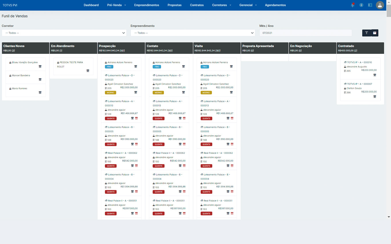 Acompanhe a evolução das negociações e transformação dos leads em prospects de venda, por meio das ações executadas pelos corretores no sistema.