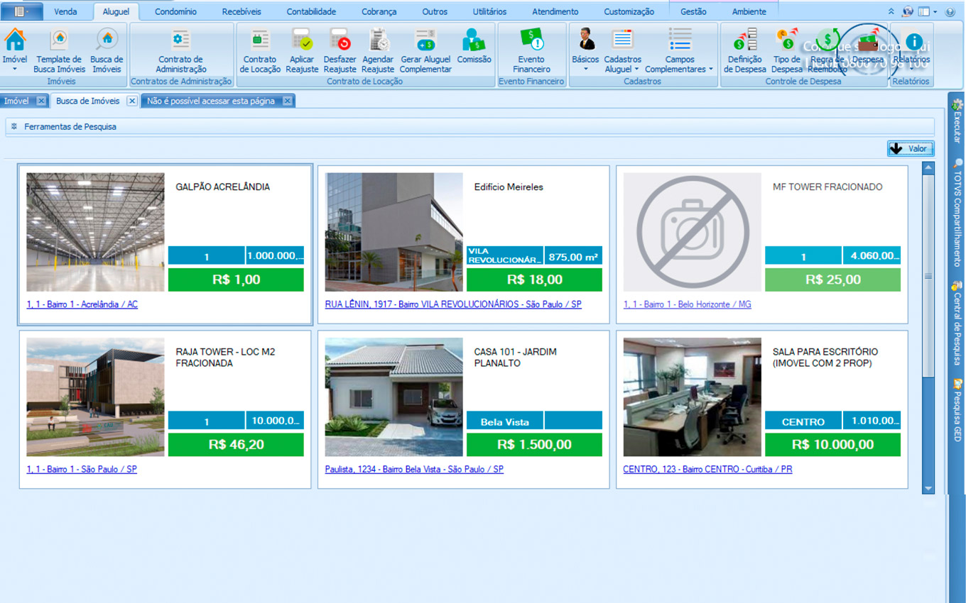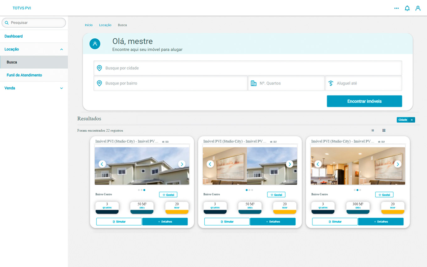Realize pesquisas no backoffice para identificar imóveis disponíveis para locação.