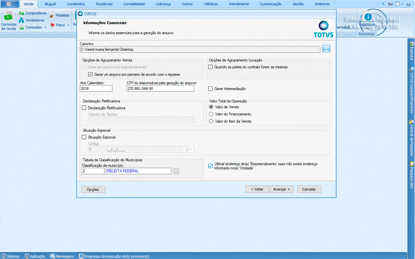 Realize o gerenciamento das obrigações contábeis e fiscais relativas à sua operação. Com o módulo, você realiza a geração da Dimob, em conformidade com a Receita Federal do Brasil, e da EFD PIS/Cofins, com a geração de arquivos específicos exigidos pelo setor imobiliário.