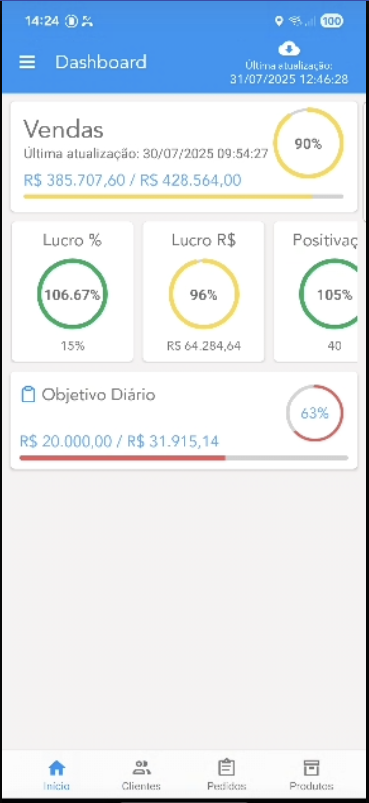 detalhada para vendedores e consolidada para gestores.