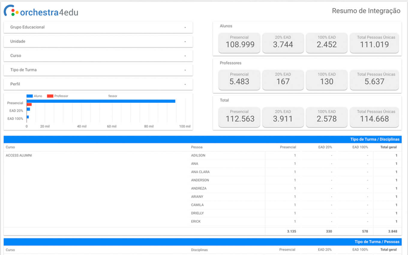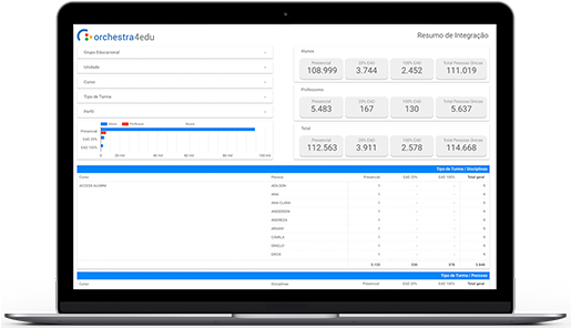 Visualize de forma simples e prática um resumo com informações sobre todas as salas de aula integradas da sua instituição de ensino.