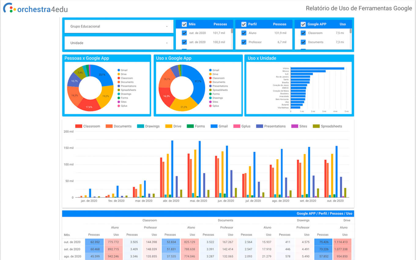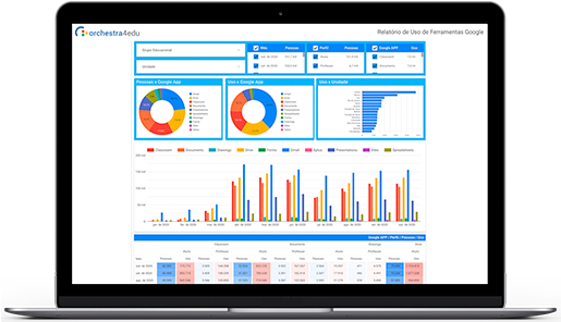 Identifique exatamente quais são as ferramentas do Google for Education mais utilizadas na sua instituição de ensino por meio de um relatório que mede a intensidade de uso de cada aluno ou professor.