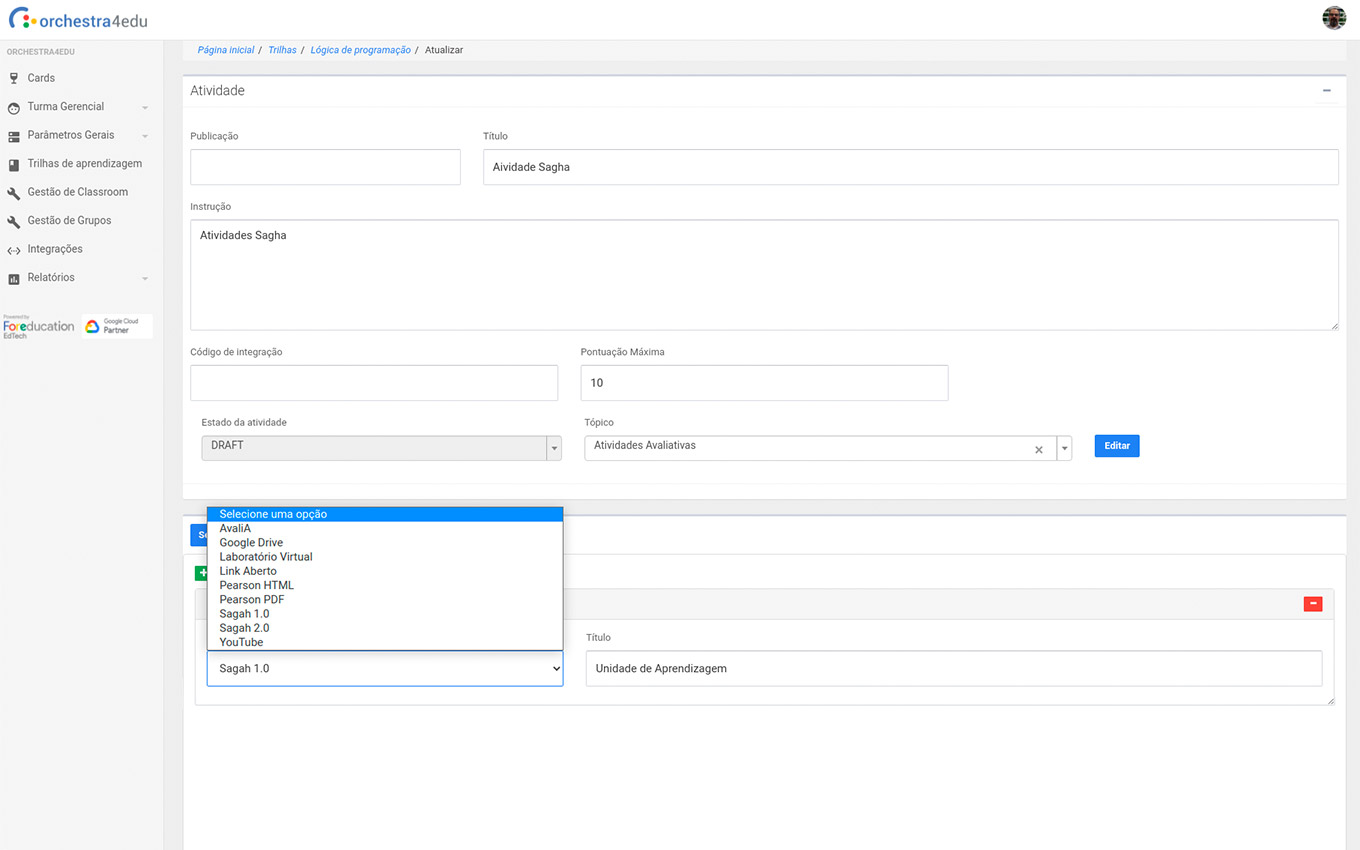 Edite trilhas de aprendizagem com videoaulas, imagens, textos, áudios e avaliações, transformando o Google Classroom em uma plataforma digital de aprendizagem.
