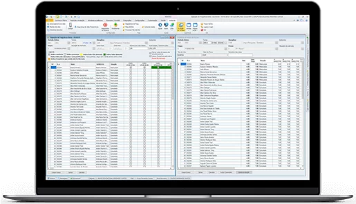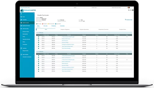 Organize os cadastros gerais de alunos, professores e turnos, assim como a estrutura curricular e o quadro de horário da sua instituição. Além disso, você conta com uma grade de cursos e disciplinas.