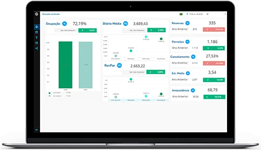 Tenha um dashboard gráfico e intuitivo, com indicadores- chave de precificação hoteleira e acesso fácil e rápido a diversos dados importantes.