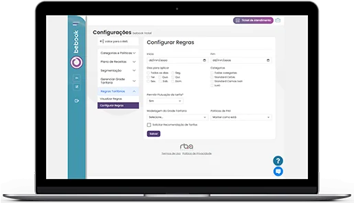 Cadastre o tarifário ou use open price no RMS Hotelaria by Bebook, ajustando a precificação com base no seu histórico e demanda de mercado.