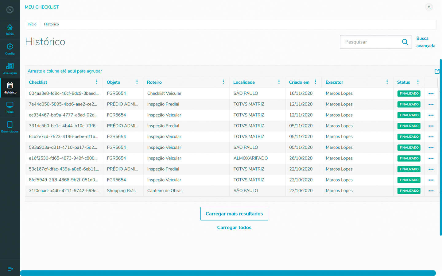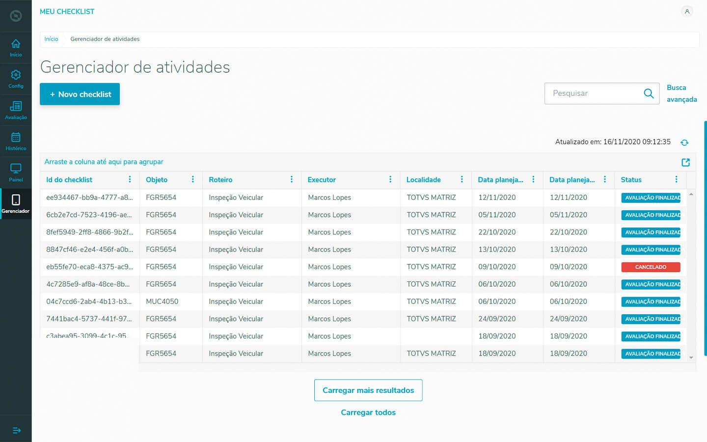 Consulte todas as informações no portal da ferramenta e saiba quando as rotinas foram executadas, quem as executou e quais as respostas registradas.
