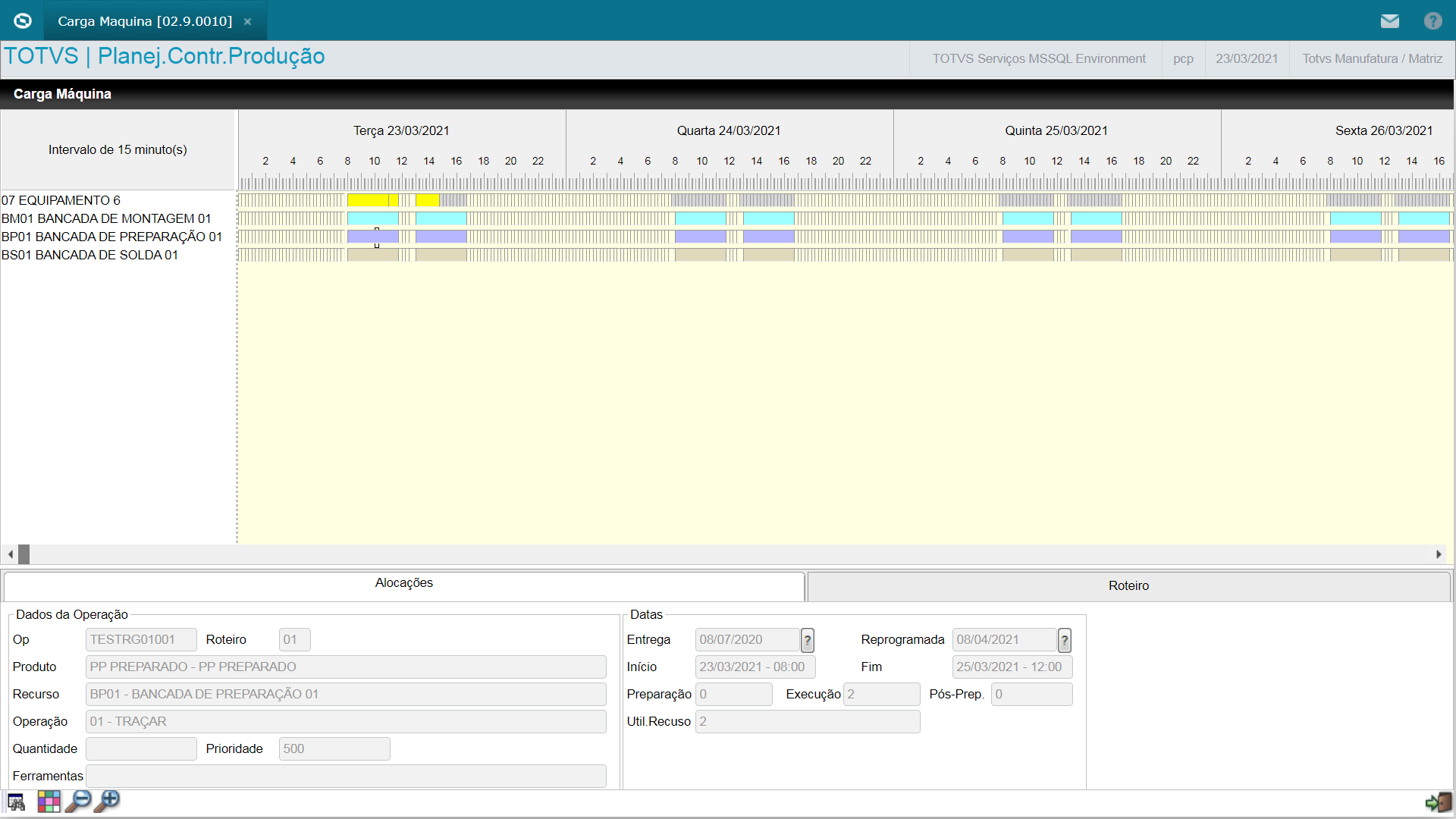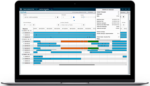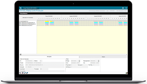 Projete sua produção com a capacidade alocada por máquinas, recursos e operações, utlizando dados do PCP e MRP. Além de fazer apontamentos em tempo real.