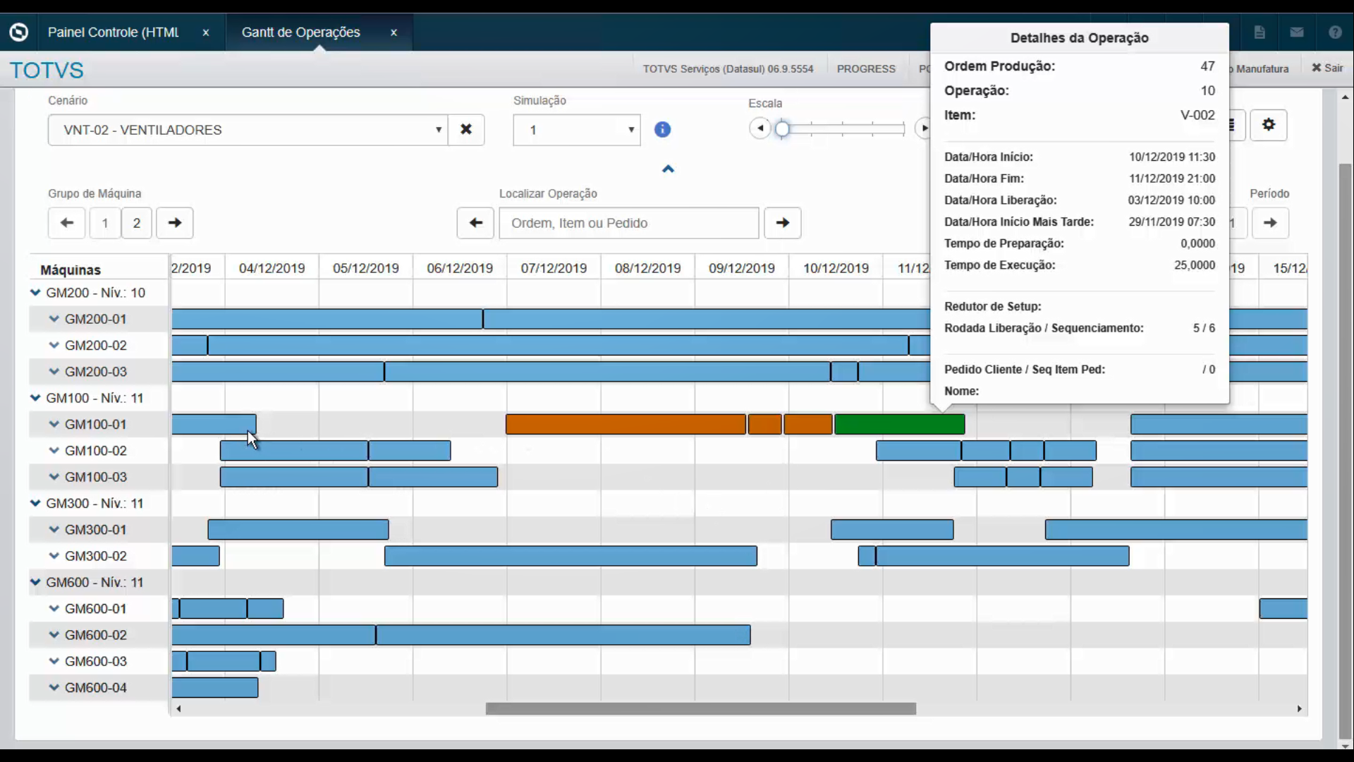 Determine a melhor sequência de produção acompanhando a capacidade, disponibilidade das máquinas, tempo de setup, ordens de produção e muito mais.