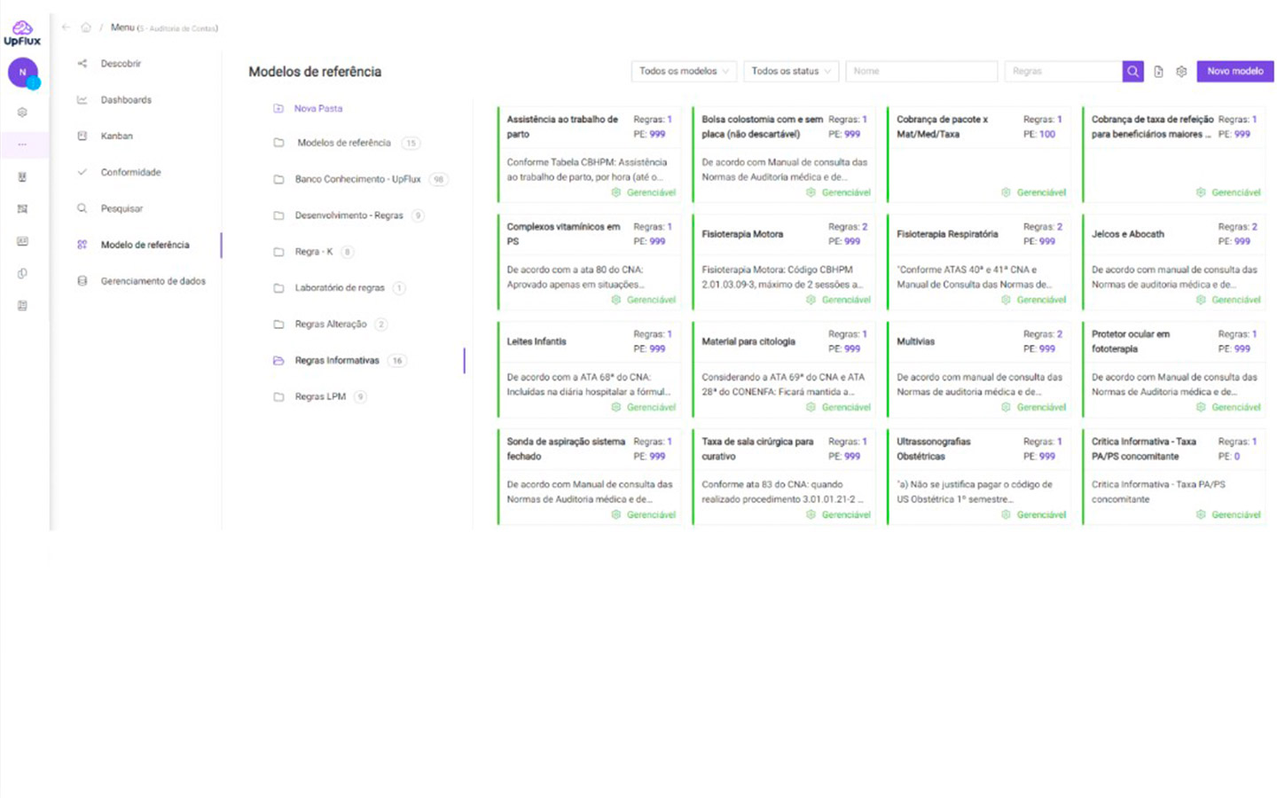 Armazene suas regras com diferentes contextos por prestador, tipo de auditoria, especialidade médica, entre outros, automatizando a auditoria retrospectiva para operadoras.
