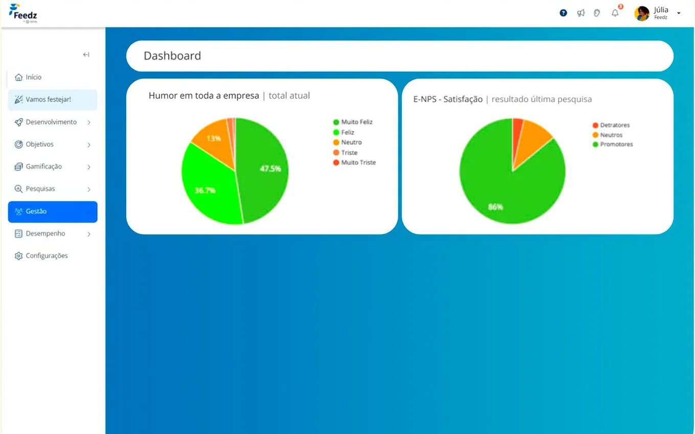 - Dashboards detalhados para monitorar o clima organizacional em tempo real