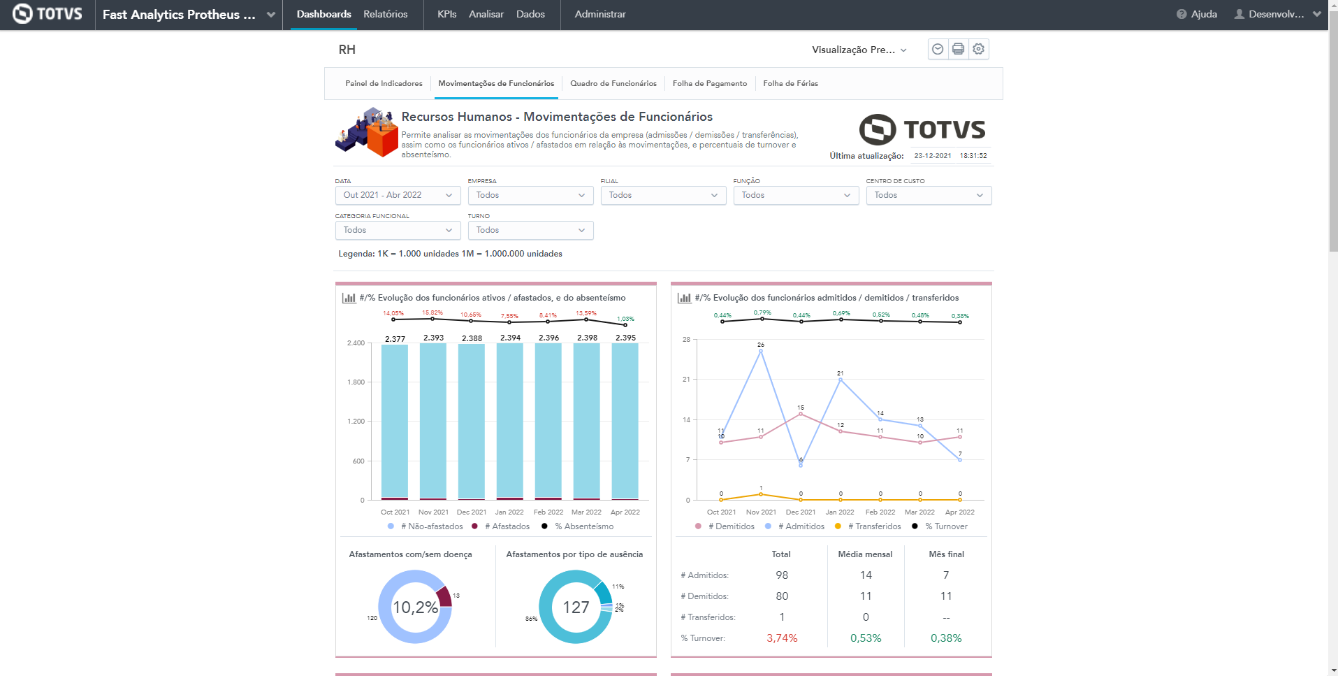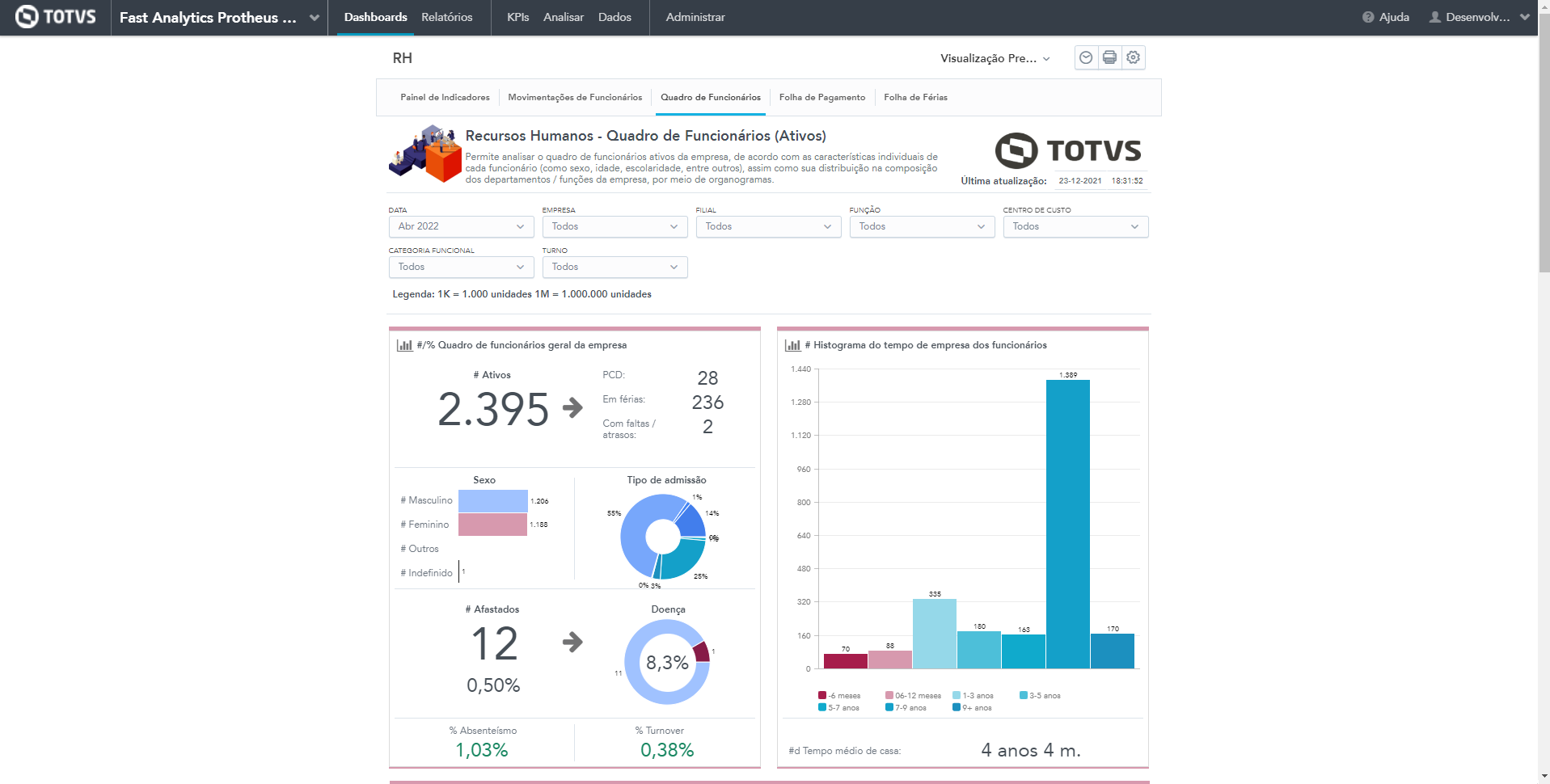 - Relatórios com dados estratégicos para apoiar decisões das lideranças e do RH
