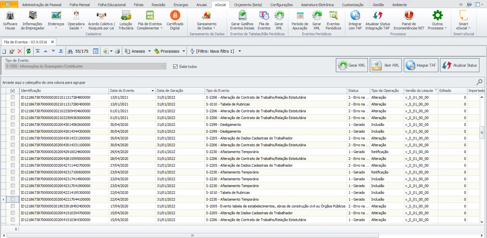 Temos uma ferramenta específica para tal, módulo Automação Fiscal, que consolida todos os eventos oriundos dos diversos módulos, como Folha de Pagamento, Ponto, Medicina e Segurança, Jurídico, Financeiro, entre outros. Cada um desses módulos envia os eventos para esta ferramenta, que faz a pré-validação, transmissão e controla os retornos e inconsistências, além de fazer a guarda dos recibos.