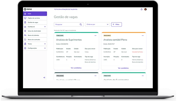 Com o TOTVS RH Atração de Talentos, plataforma de recrutamento e seleção com IA, você tem mais candidaturas com mais inteligência!