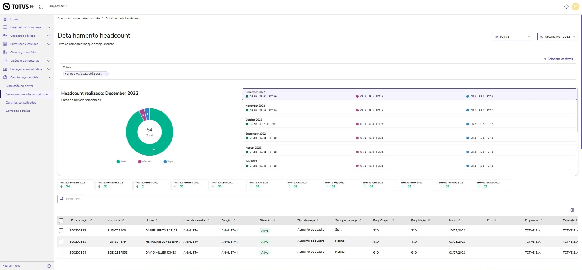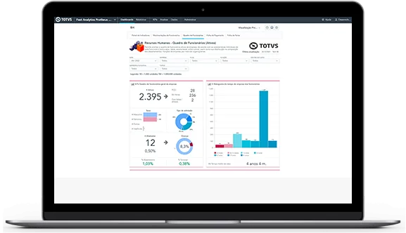 Com as soluções para RH da TOTVS, seu time poderá focar na gestão de pessoas. Nossa tecnologia oferece subsídios para planejar a força de trabalho e remuneração, avaliar as metas e competências, fazer a gestão dos treinamentos e avaliar a performance e metas. Além de toda parte burocrática e de legislação, que é amplamente reconhecida no mercado.