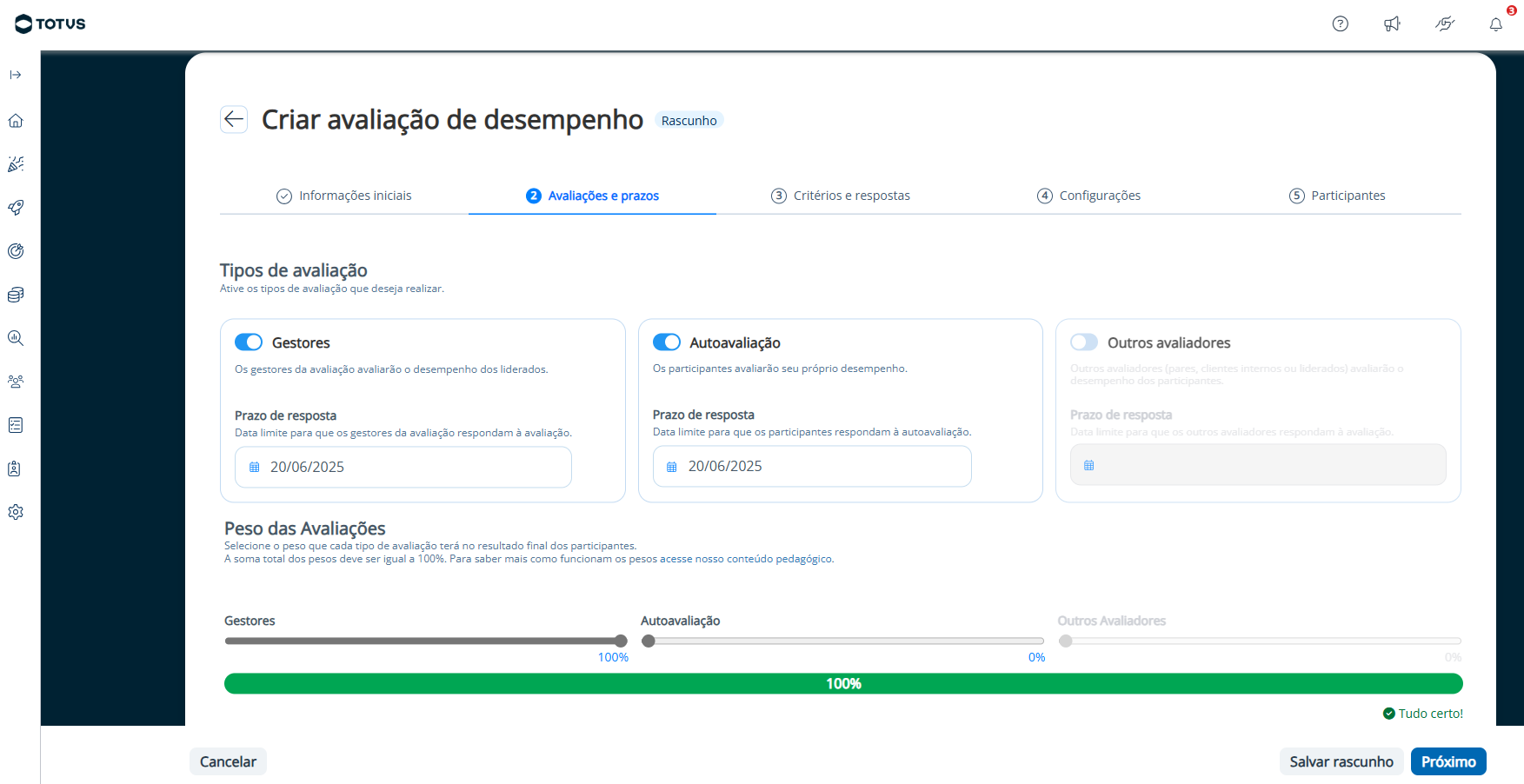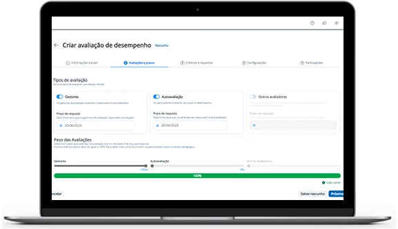- Avaliações 90º, 180º e 360º personalizadas, com diversos critérios
