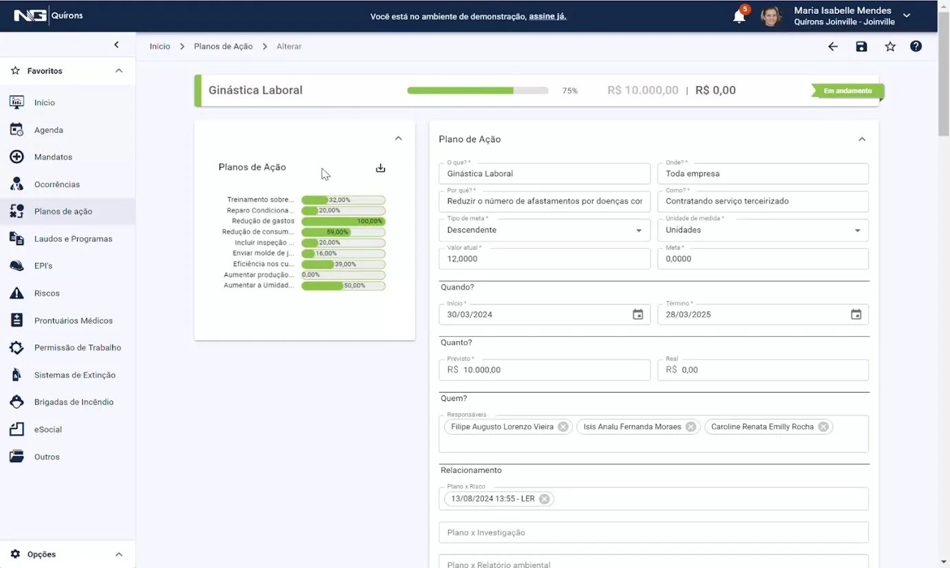 Tudo isso com registros digitais e relatórios que facilitam auditorias e a gestão contínua dos riscos ocupacionais.
