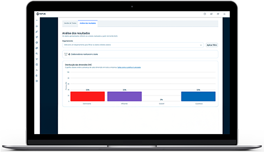 Automatize o envio do teste DISC de forma simples e obtenha resultados diretos. Mapeie até 44 perfis comportamentais para decisões estratégicas em contratação e PDI.