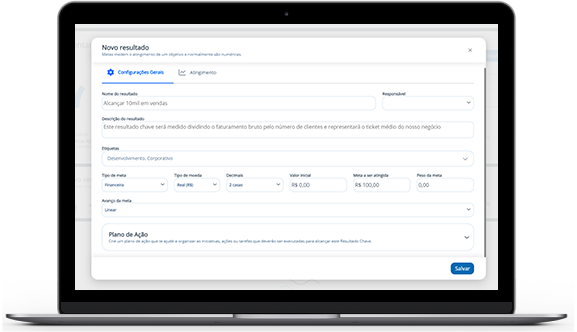 Aumente a performance com planos de ação atrelados às metas e visualize o progresso em tempo real no Mapa de Objetivos.