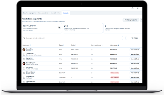 Gerencie incentivos como PLR e PPR com o sistema de gestão de OKR — integrado à folha de pagamento com agilidade e sem erros manuais.
