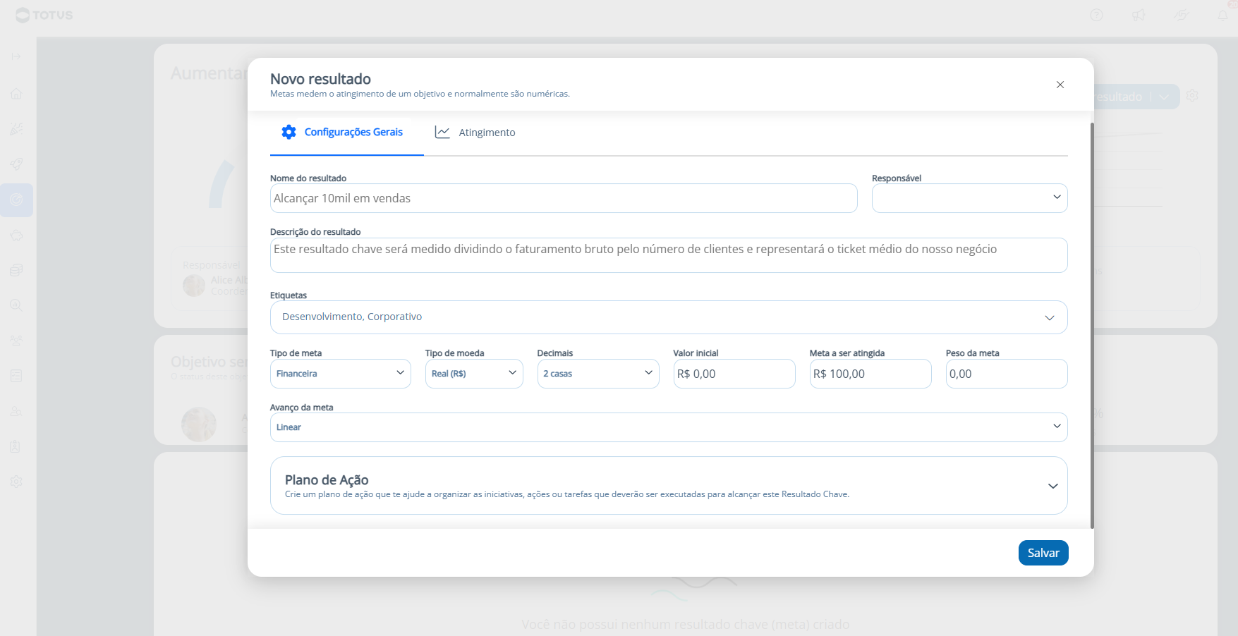 Aumente a performance com planos de ação atrelados às metas e visualize o progresso em tempo real no Mapa de Objetivos.