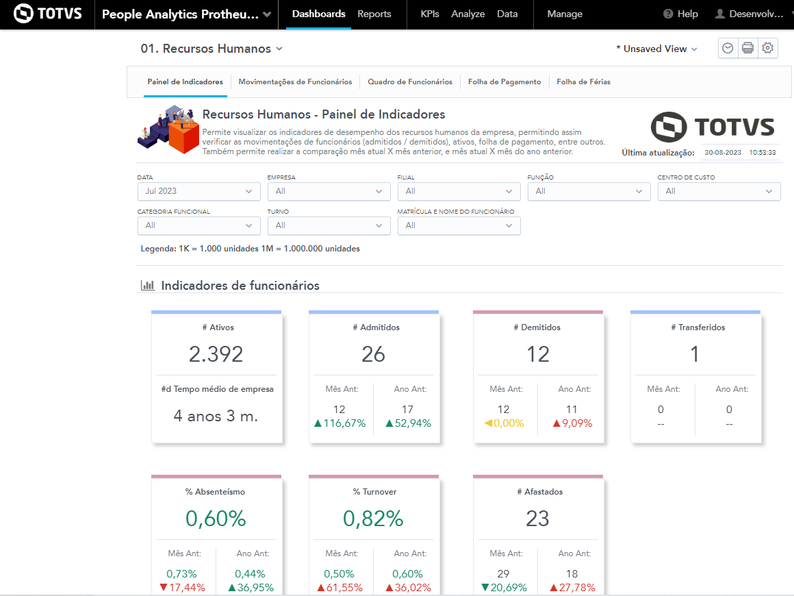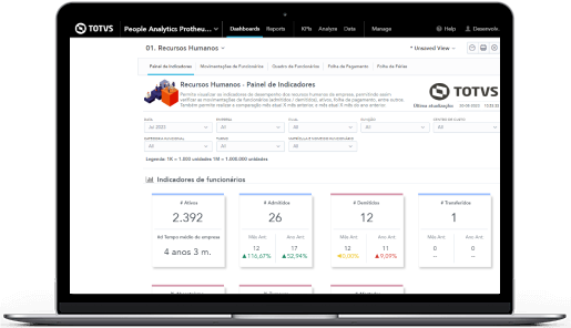 RH da TOTVS e acesso a qualquer hora e lugar - Dashboards simples, intuitivos e com possibilidade de personalização
