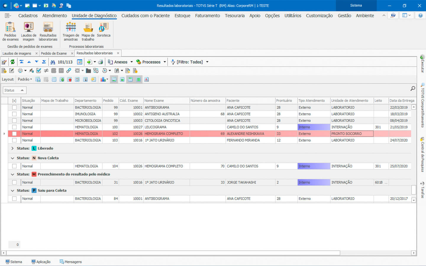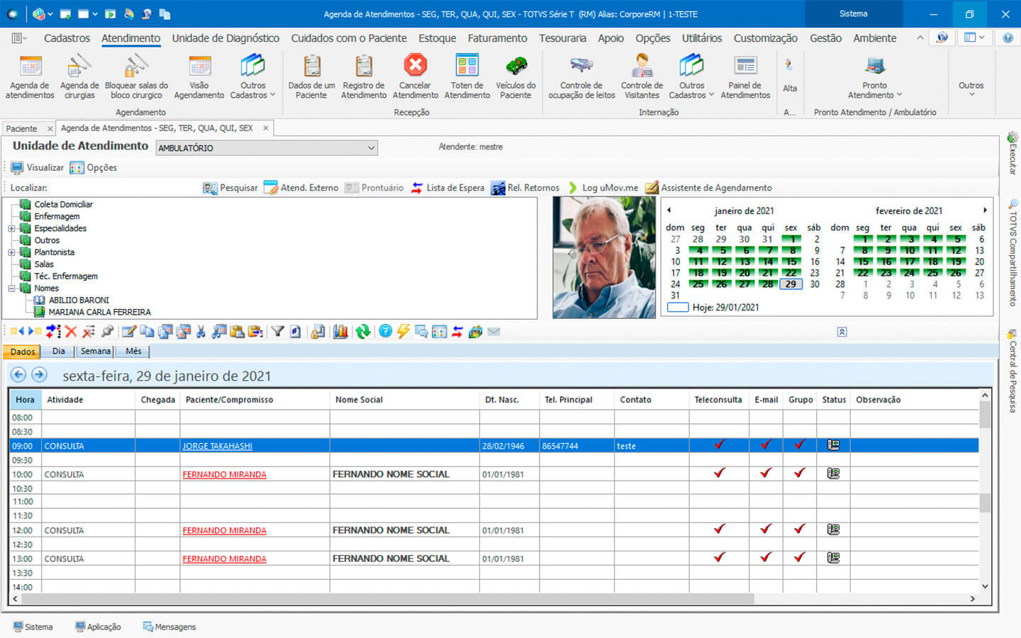 - Controle total dos processos, desde a marcação de consultas e exames,