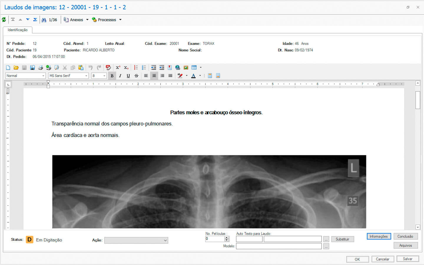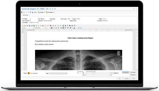 Administre a geração de laudos de exame com mais eficiência, criando modelos, personalizando layouts de documentos e visualizando imagens diretamente no sistema.