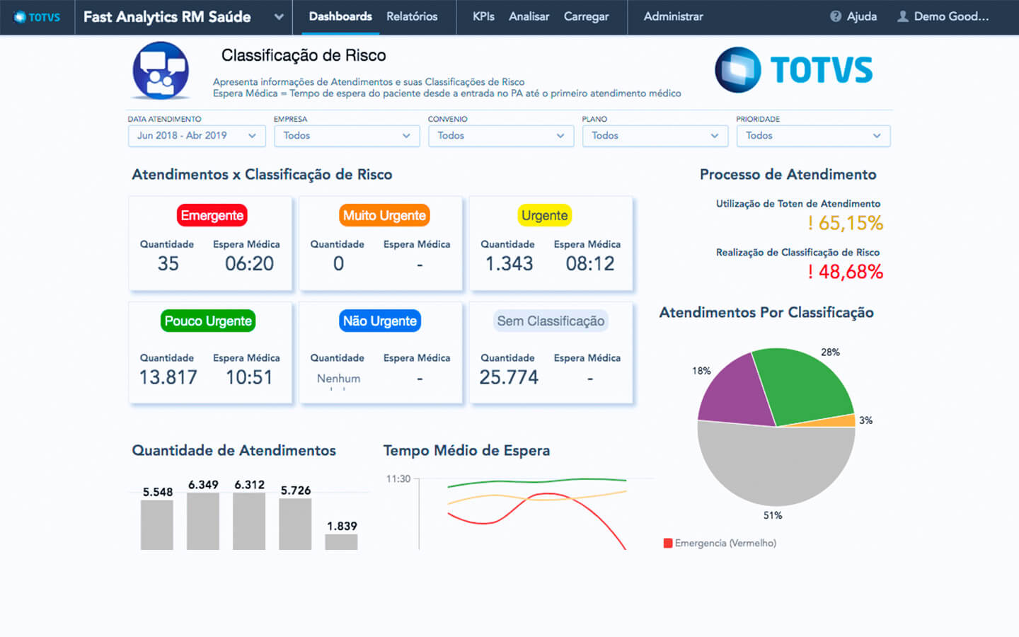 Tenha acesso a relatórios com os principais indicadores de performance de sua instituição, relativos a tempo de atendimento, visão financeira e visão interna.