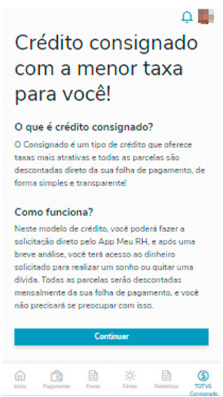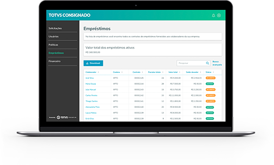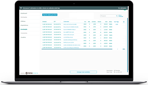 É um produto que tem como objetivo facilitar e agilizar a gestão do empréstimo consignado para seu departamento pessoal, tudo de forma integrada ao seu sistema de folha de pagamento TOTVS RH.